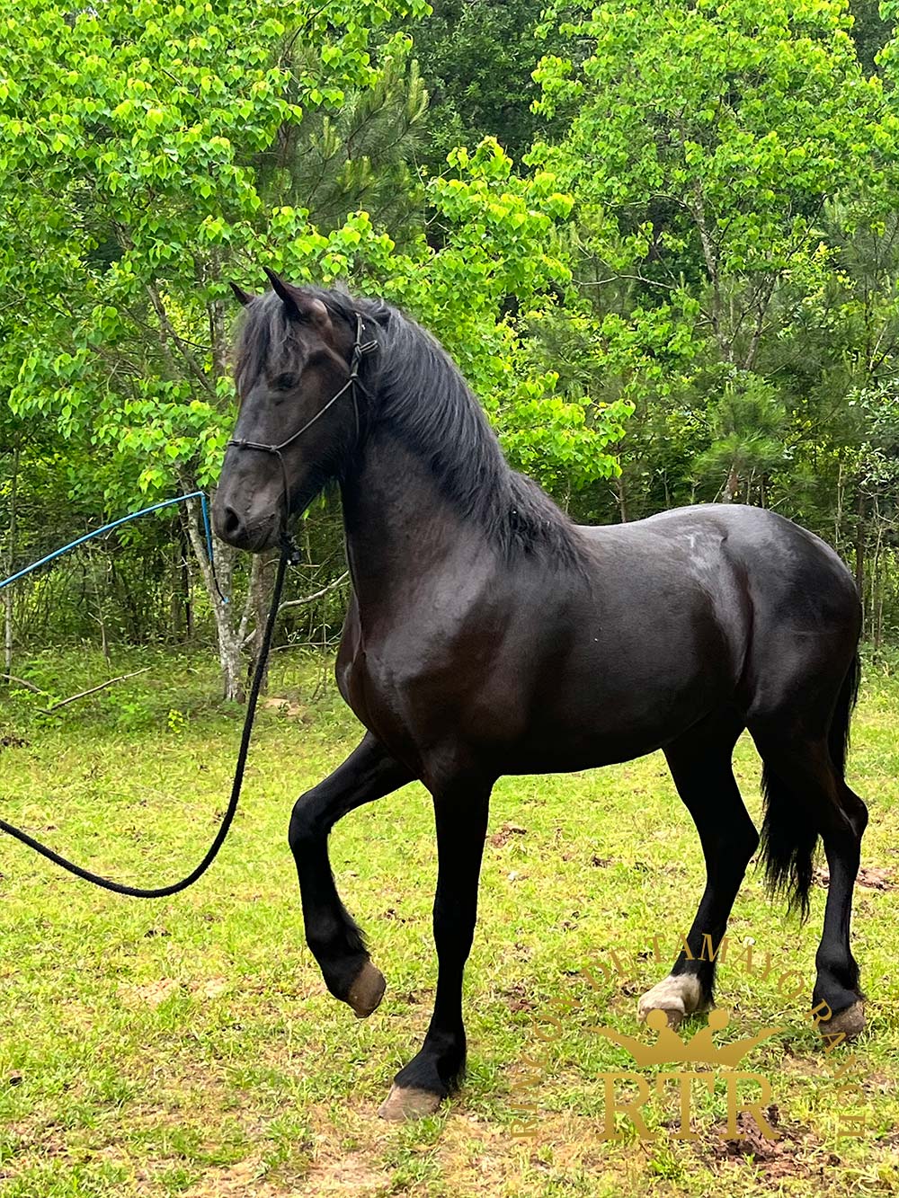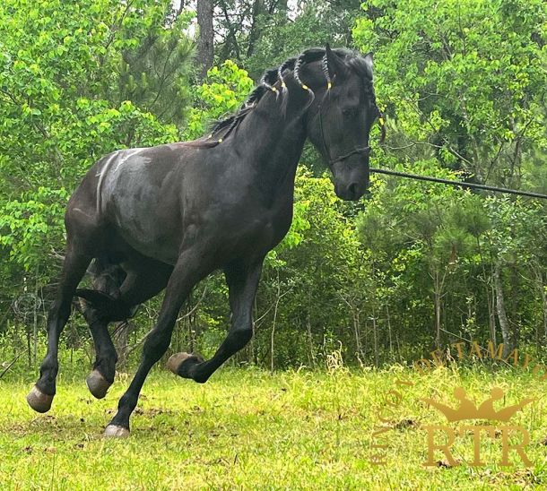 Permítenos presentarte a Presumido, un majestuoso Caballo Frisón con movimientos expresivos y gran presencia. Este hermoso ejemplar se encuentra en perfecto estado de salud, y si requieres cuidados para él, Rincón de Tamayo Ranch te ofrece el servicio más completo en Conroe, Texas.